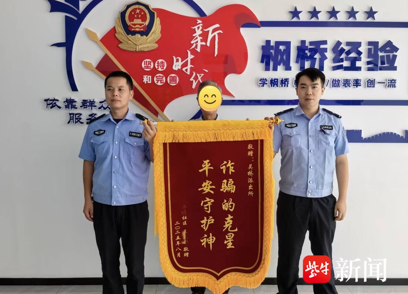 揚子晚報網(wǎng)8月29日訊(通訊員 江公 記者 陳詠)記者29日從揚州市江都區(qū)公安分局了解到一則暖新聞,本周,清脆的鞭炮聲在該局吳橋派出所門口響起,引得路過群眾紛紛駐足。只見一位老人手捧鮮紅錦旗,笑容滿面地走進派出所。這位老者,是受害人老王。“太感謝了,幫我把血汗錢追回頭了,你們真的是為民辦實事啊?!?老王握著民警的手,激動地說。